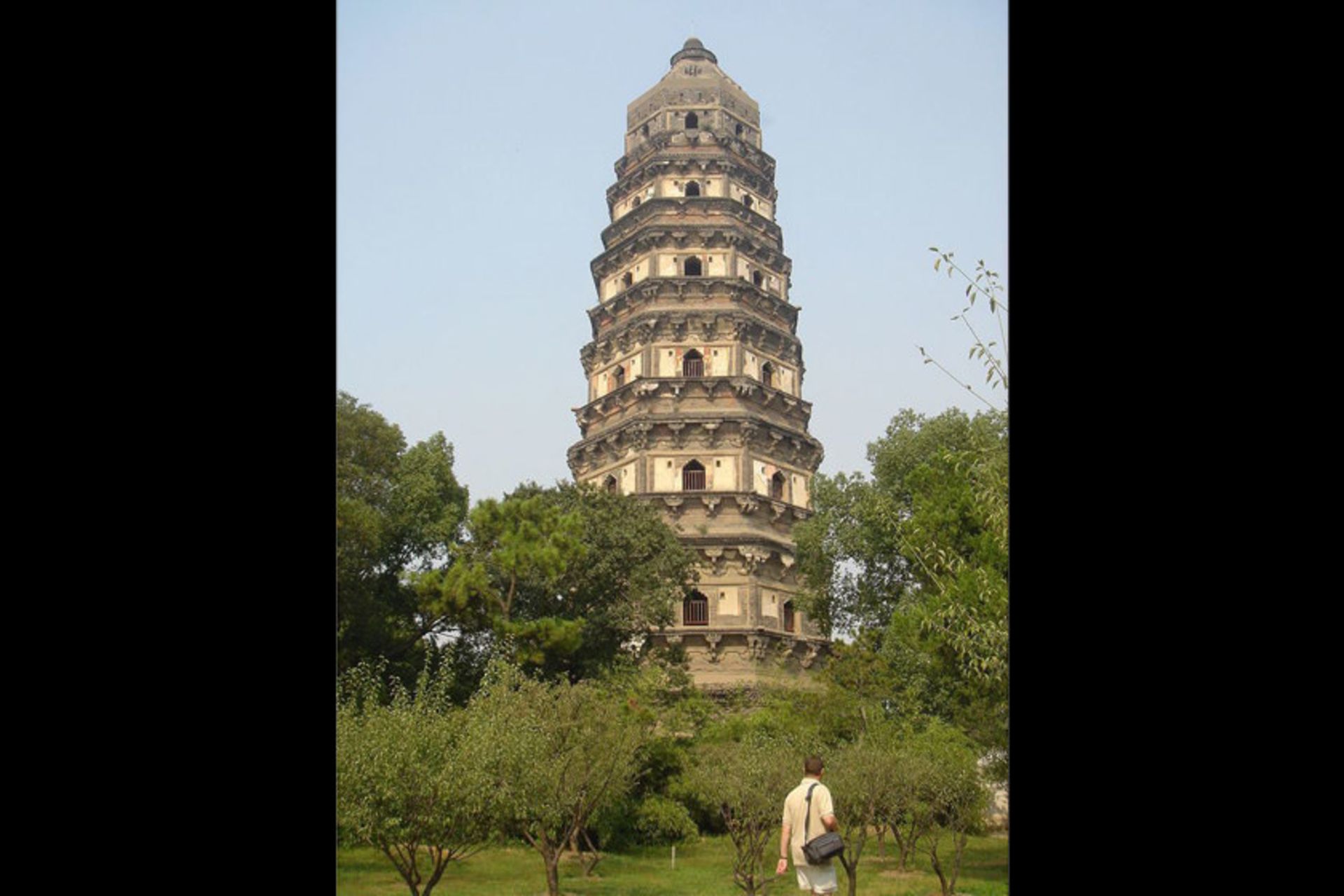 پاگودا تپه ببر که با نام پاگودا یونیان نیز شناخته میشود، روی تپه ببر در شهر سوژو چین قرار دارد و از آن با لقب برج کج چین یاد میشود. با قدمتی که به سال ۳۲۷ بازمیگردد، بنای پاگودا در اثر جنگهای متعدد متحمل آسیبهای زیادی شد و برای آخرین بار در سال ۱۸۷۱، مورد بازسازی قرار گرفته. این سازه ۴۷ متر ارتفاع و هفت طبقه دارد. بیش از هزار سال پیش، پاگودا بر اثر فشار طبیعی اندکی کج شد، بهطوری که امروزه اختلاف بالا و پایین برج حدود ۲.۳۲ متر است.