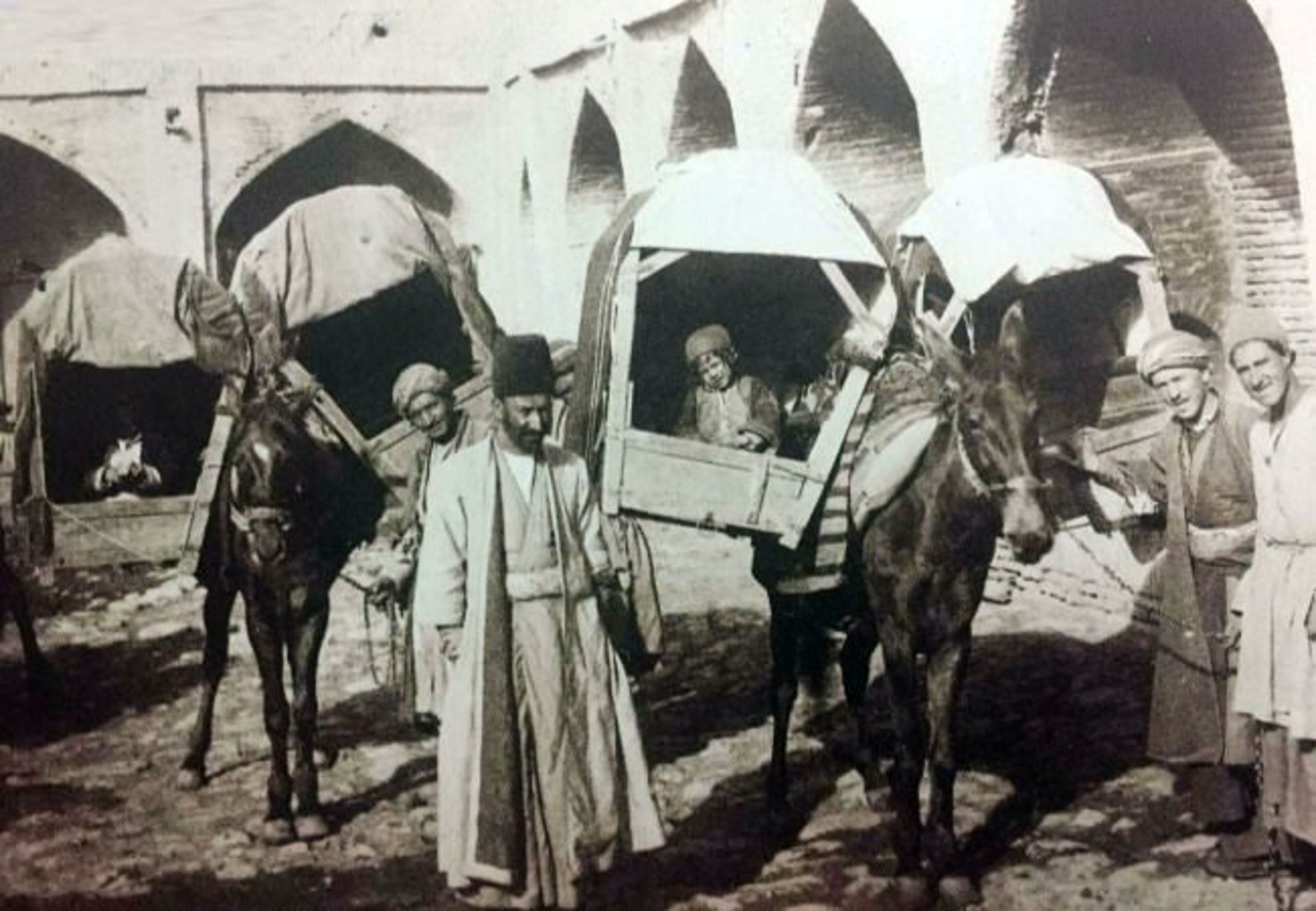 این نوع سفر بهصورت گروهی و با سرعت کم بههمراه کاروانهای تجارتی یا کاروانهای مسافرتی که توسط چاروادارها هدایت میشد، انجام میگرفت. سفر در روز انجام میشد و هر روز معمولا یک منزل یا شش فرسخ معادل ۳۶ کیلومتر، راه طی میشد و شب را در مکانی استراحت میکردند و روزهای بعد، سفر را به همین ترتیب ادامه میدادند تا به مقصد برسند.