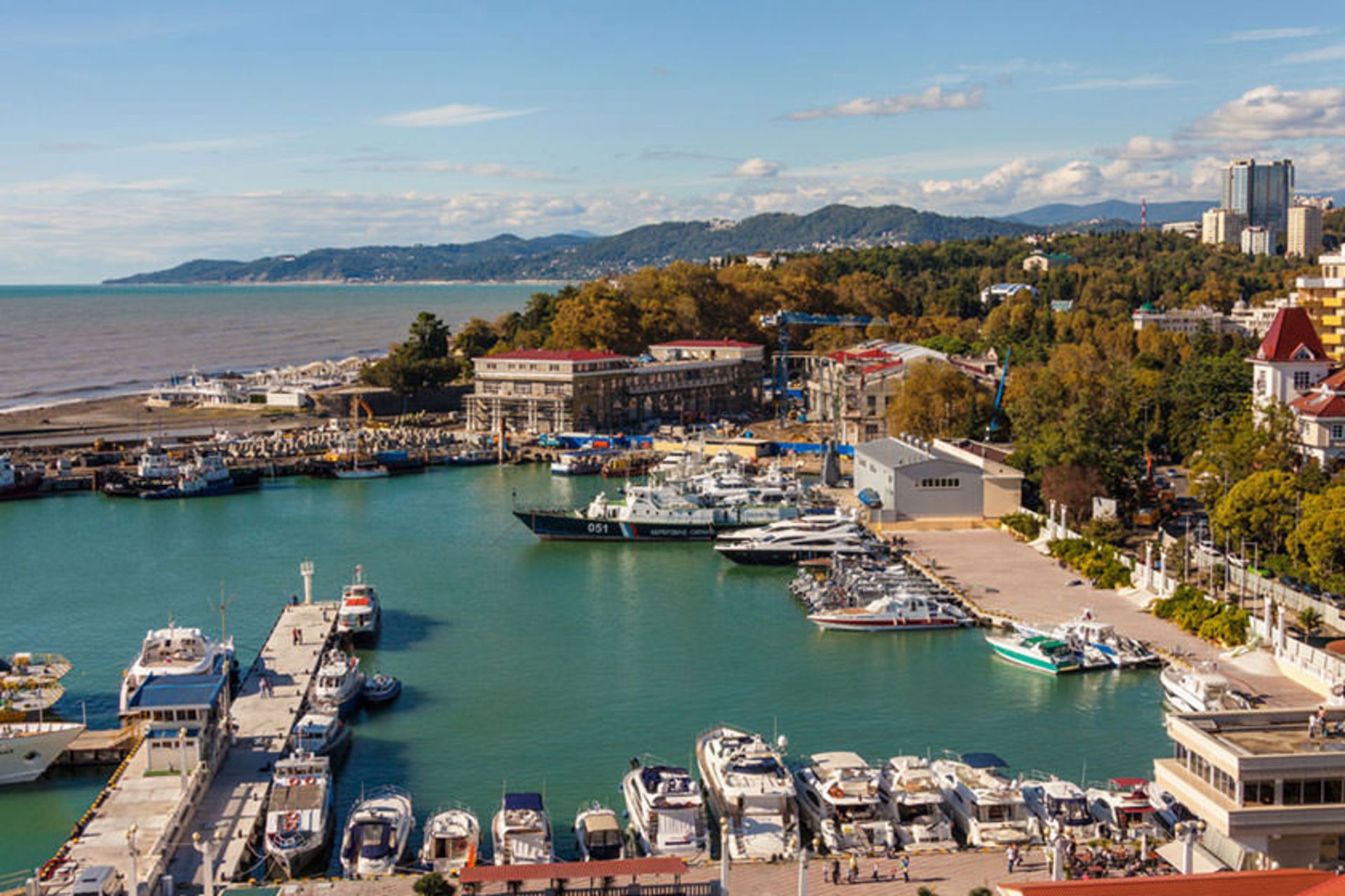 مجموعهای زیبا از ساختمانهایی به سبک دوران استانیلیست ساخته شده است که در کنار آنها میتوانید قدم بزنید، در رستورانها غذا بخورید و در کنار ساحل تفریح کنید و تورهای کروز را تجربه کنید. این منطقه بندری یکی از جاذبهها و نمادهای شهر سوچی است و معماری آن با ستونها و گنبدهای مجلل، مورد توجه گردشگران قرار میگیرد. علاوه بر زیباییهای معماری، تندیسهای متعددی از شخصیتهای محبوب در این منطقه ساخته شده است. این بندر، نقطه شروع خیابان زیبای Primorskaya است که جاذبههای زیادی را در دل خود جای داده است. تالار کنسرت فستیوال، پارک دریایی Mayak و سواحل پارک M.V. Frunze، چند نمونه از این جاذبهها است.