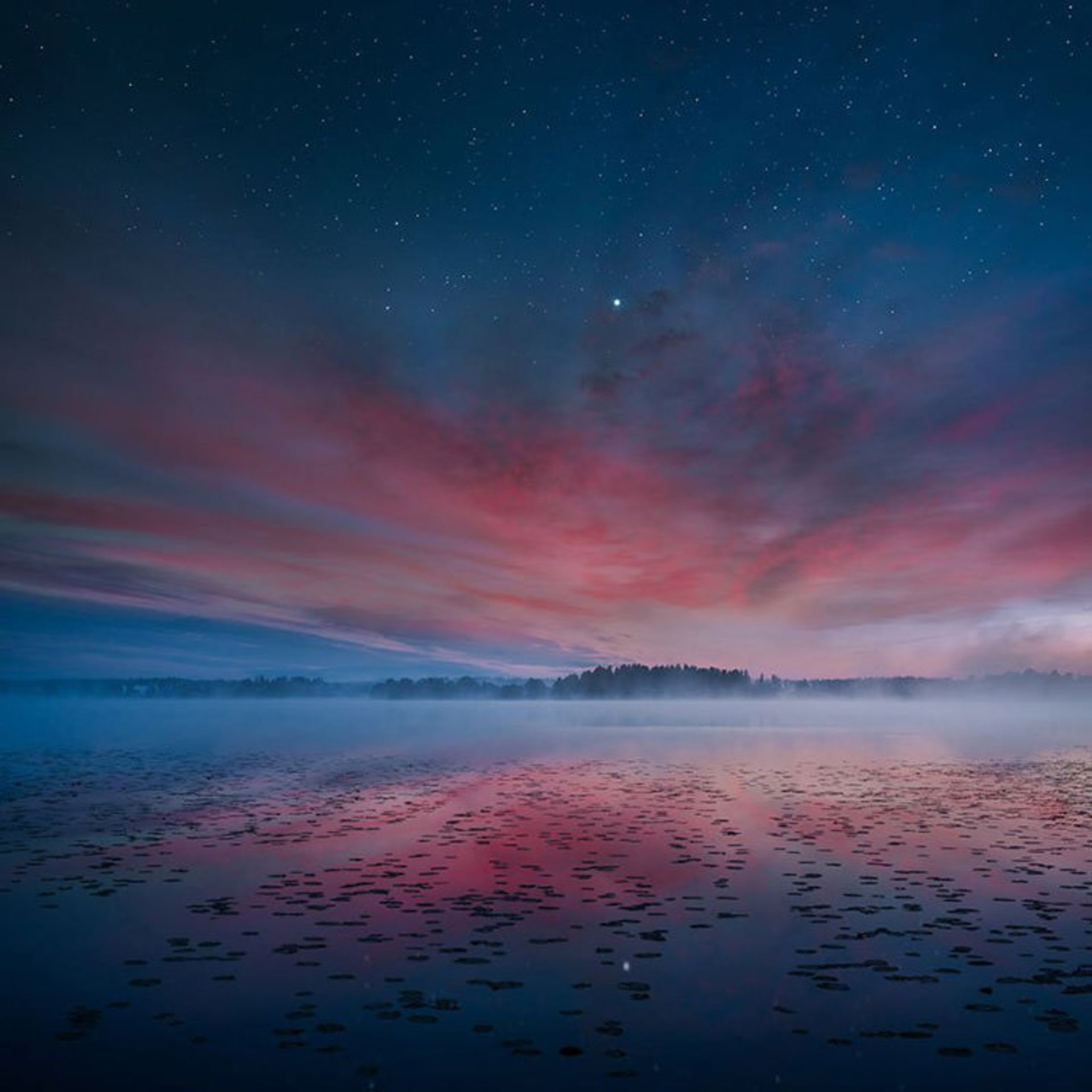 فنلاند، بخشی از سرزمینهای نوردیک (Nordic) بوده که در شمال قارهی سبز واقع شده است. این کشور در غرب با سوئد، در شمال با نروژ و در شرق با روسیه هممرز است. کشور استونی نیز در جنوب خلیج فنلاند جای گرفته است. فنلاند از نظر نواحی جغرافیایی جزئی از "Fennoscandia" بوده که اسکاندیناوی و بخشهایی از روسیه را نیز در برگرفته است. طبق سرشماریهای انجام شده در سال 2013، فنلاند 5.5 میلیون نفر جمیعت دارد که عمدتا در بخشهای جنوبی این کشور سکونت دارند. این کشور از نظر وسعت هشتمین کشور بزرگ قارهی اروپا بوده و در عین حال دارای کمترین تراکم جمعیت در اتحادیه اروپا است. پایتخت این کشور، شهر هلسینکی است. فنلاند کشوری است سرسبز که با آبی زلال دریاچه و سبزی باطراوت جنگل هم آواست. شاید به همین دلیل است که این کشور به نام کشور هزار دریاچه نیز شناخته میشود. "Mikko Lagerestdt"، عکاس خوش ذوقی است که در سفری تصویری، بیننده را با خود همراه کرده و او را به عمق رمز و راز شبهای فنلاند هدایت میکند. او در قالب مجموعه عکسهای جدید خود، جلوهی آسمان پرستاره را در گوشهای دیگر از زمین به تصویر کشیده است. نام این مجموعه "عمق خیالات" بوده و ماحصل تلاش دو هفتهای این عکاس ماجراجو است. او میگوید که این گشتوگذار دو هفتهای، در شمار خاطرات ارزشمند و بهیادماندنی زندگی او جای گرفته است. او تمام مهارتها و تجربههای خود را برای خلق این تصاویر زیبا به خدمت گرفته و کوشش کرده تا افسون و جادوی این شبهای زیبا و فراموشنشدنی را جاودانه کند. کهکشان راه شیری نمودی خاص در این مجموعه داشته و بازتاب آن در زلال درخشان آب، عمق خیالات را به زیبایی هرچه تمام به تصویر کشیده است. در عین حال تماشای شفق قطبی و رقص انوار رنگارنگ نیز وجهی دیگر از جذابیتهای غیرقابلانکار این تصاویر است. در ادامه از شما دعوت میکنیم به تماشای گوشهای از آثار این هنرمند نشسته و از نزدیک با رمز و راز نهفته در شبهای درخشان فنلاند آشنا شوید. خوب توسن خیالات شما تا کجا پیش رفت؟ آیا شما هم این حس مبهم و راز آلود را درک کردید؟ نظرات خود را با ما در کجارو به اشتراک بگذارید. منبع Behance